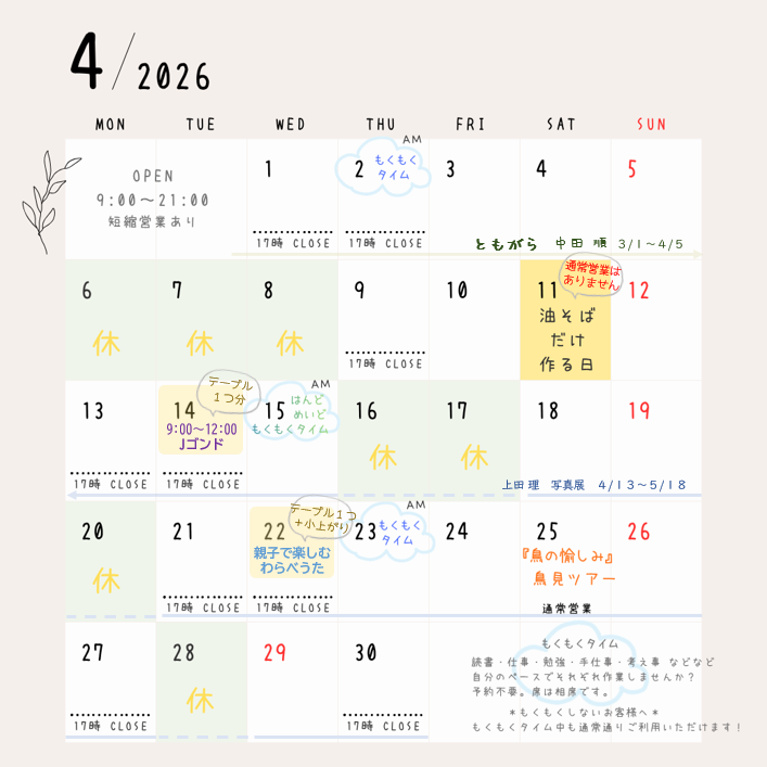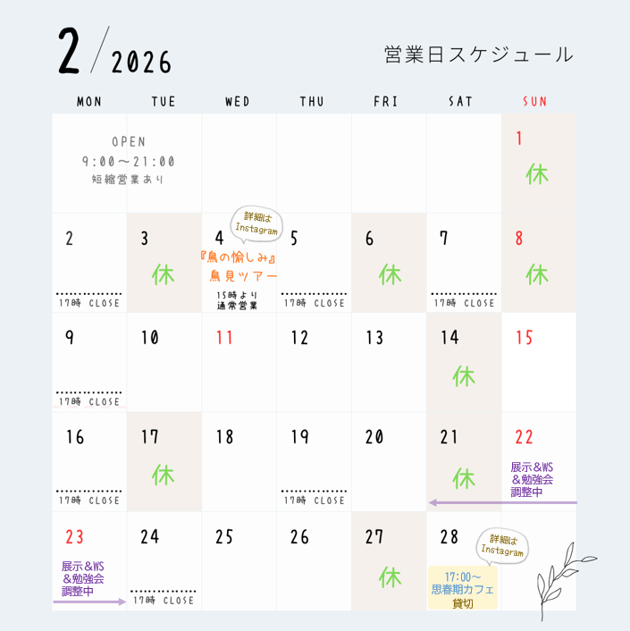 9:00 - 21:00 ※短縮営業あり