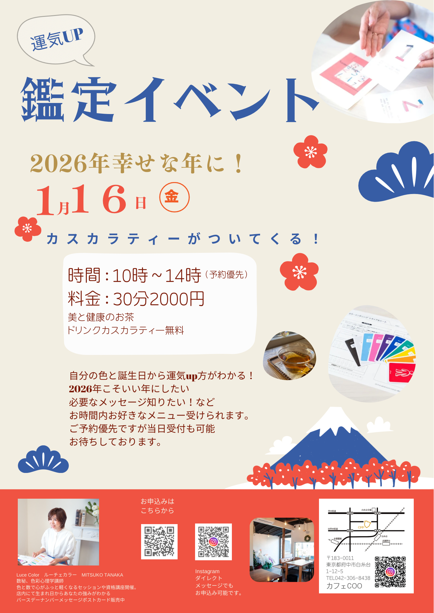 【鑑定イベント1/16】イイイロの日🌈2026年も幸せな年に!カフェCOOさんにて開催