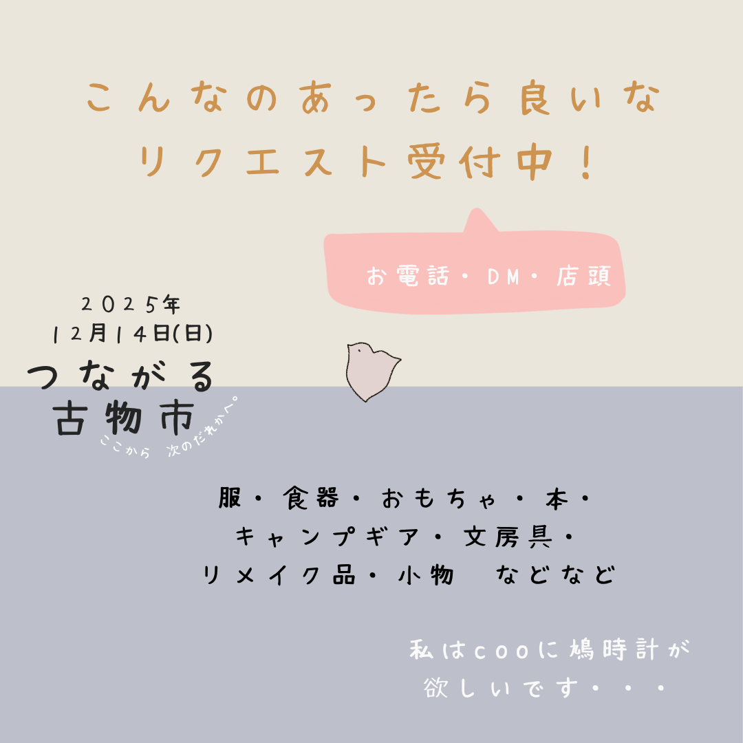 ・両手で持てるくらいの量でお願いします。(売れずに残った品はお持ち帰りください)