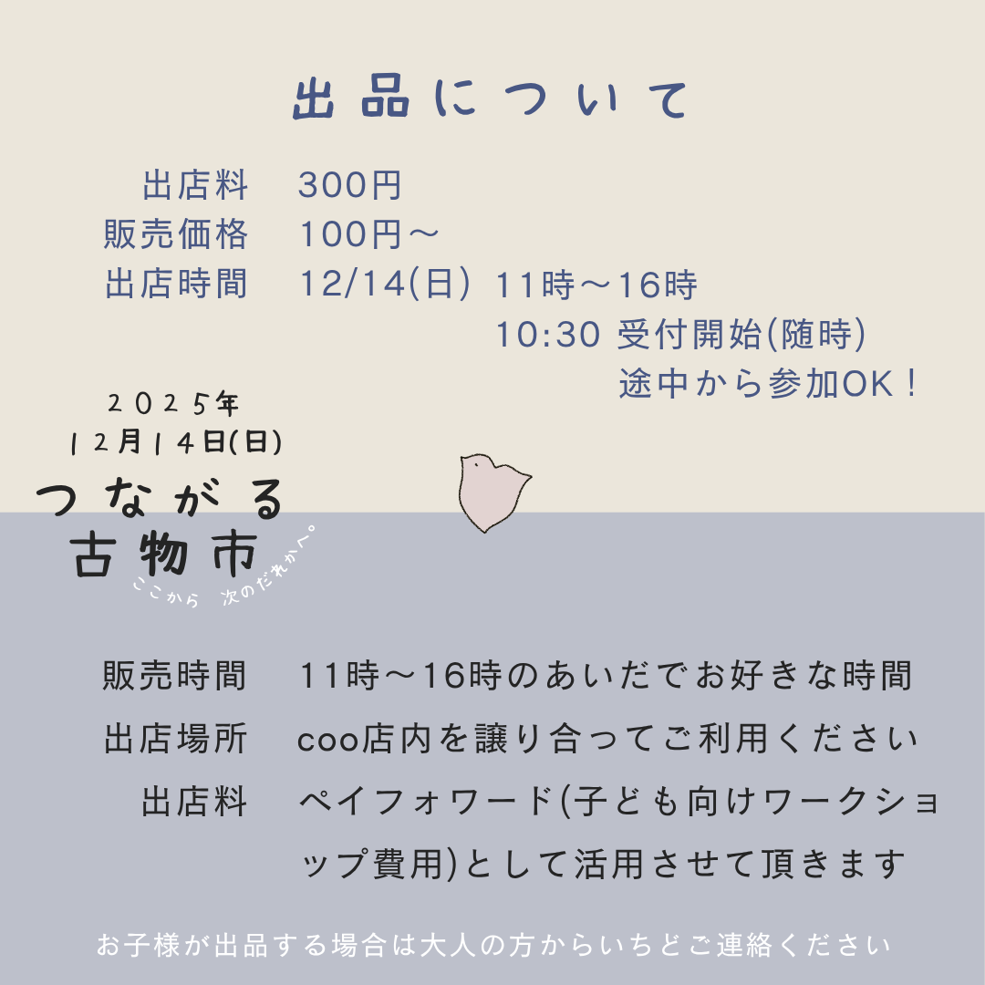 ・出店料はペイフォワード(子ども向けワークショップ費用)として活用させていただきます。
