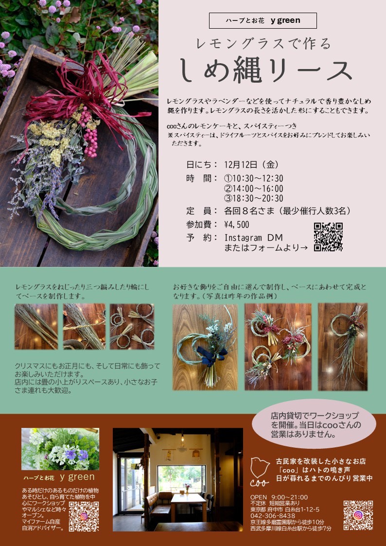 店内貸切でワークショップを開催。当日はcooの営業はありません